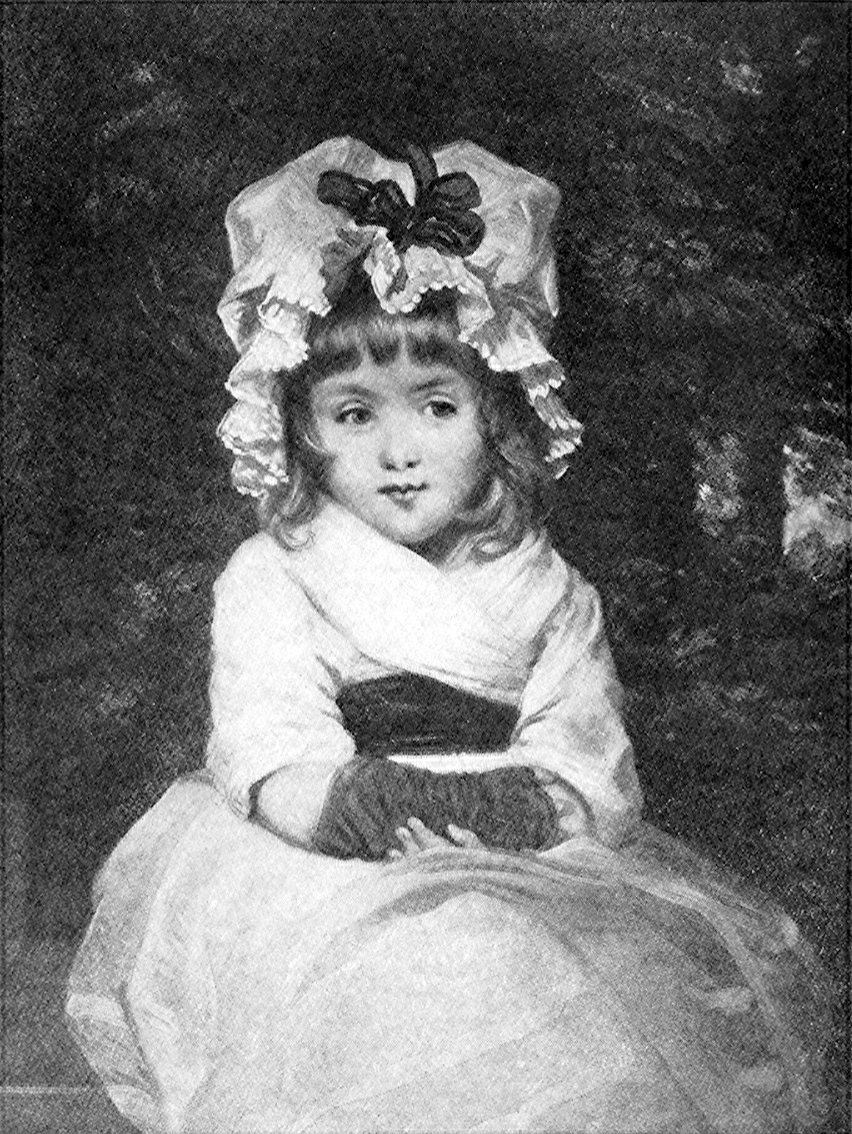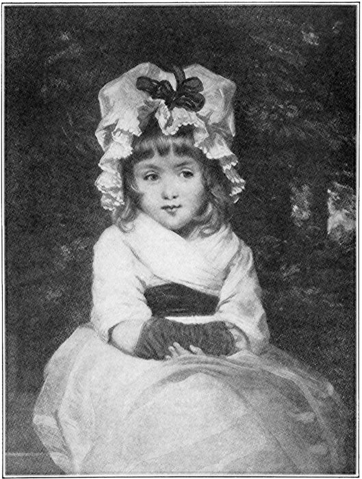 The story of the picture. This quaint little Penelope Boothby, sitting so prim with her queer cap and black silk mitts, looks as if she knows a secret that pleases her very much. Perhaps that dress she is wearing is long, and she is pretending she is some great lady who has just come to call upon the artist, Sir Joshua Reynolds. It must have been fun to walk about his great yard, with her long dress sweeping over the soft green grass. It looks as if 58the artist had lifted her into the window of his studio, and painted her as she sat there. The half mischievous look on her face makes us think she will jump down and run out among the trees at any moment. We wonder what makes her look so pleased.