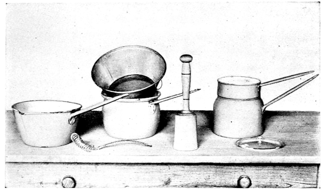 No other house in this country can show such a variety. French Fry Pans; Jelly Sieves; Enamelled, Tin, and Copper Moulds—more than 1200 patterns and different sizes; Soufflé Dishes; Coffee Mills; Pepper Mills; Table Coffee Roasters; Coffee Pots and Machines; Pot-au-feu; Shirred Egg Dishes; Casseroles; Marmites; Salad Forks and Spoons; Salad Washers; Cook’s Knives; Hateletts; Vegetable Cutters; Paste Cutters; Ramikens; Parisien Potato Cutters; Wood Cooking-School Spoons; also, a large variety of English and German Culinary Goods.