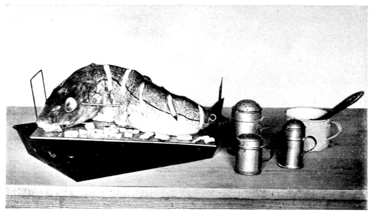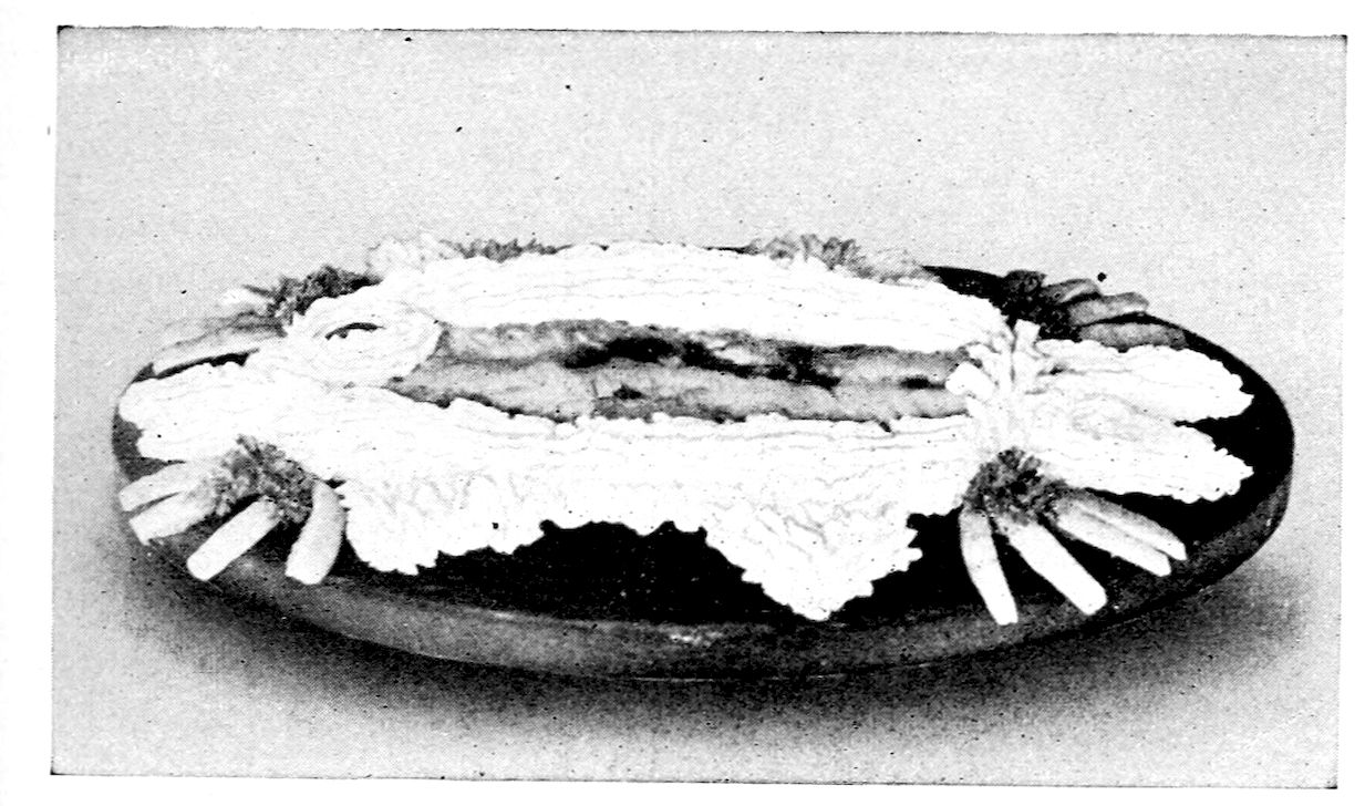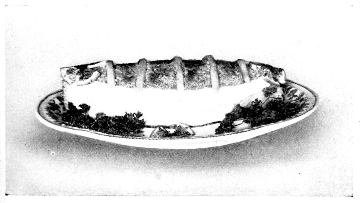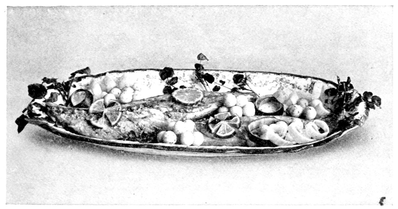 Broiled Mackerel garnished with Potato Balls, Cucumber Ribbons, Slices of Lemon cut in fancy shapes, and Parsley | 160 |