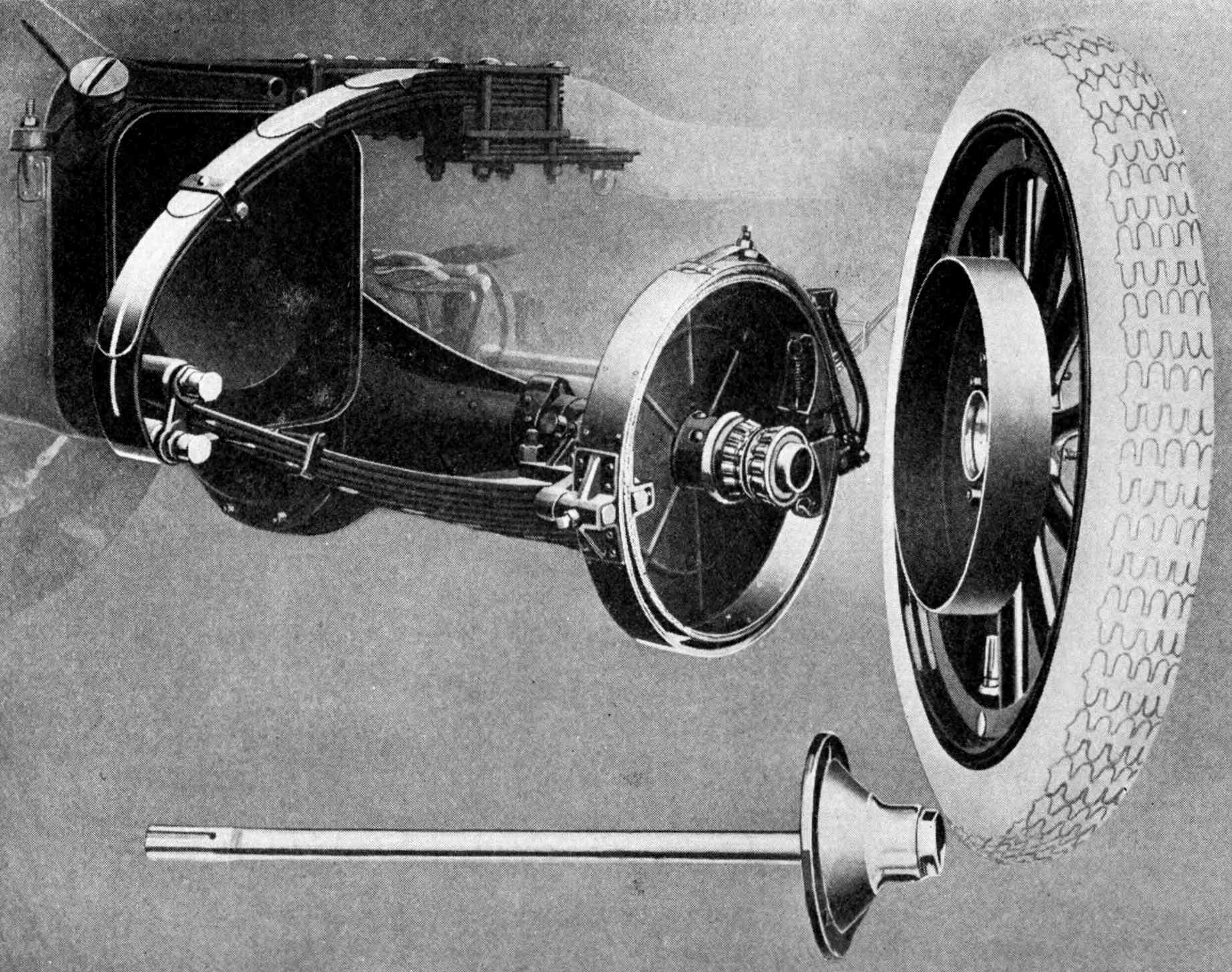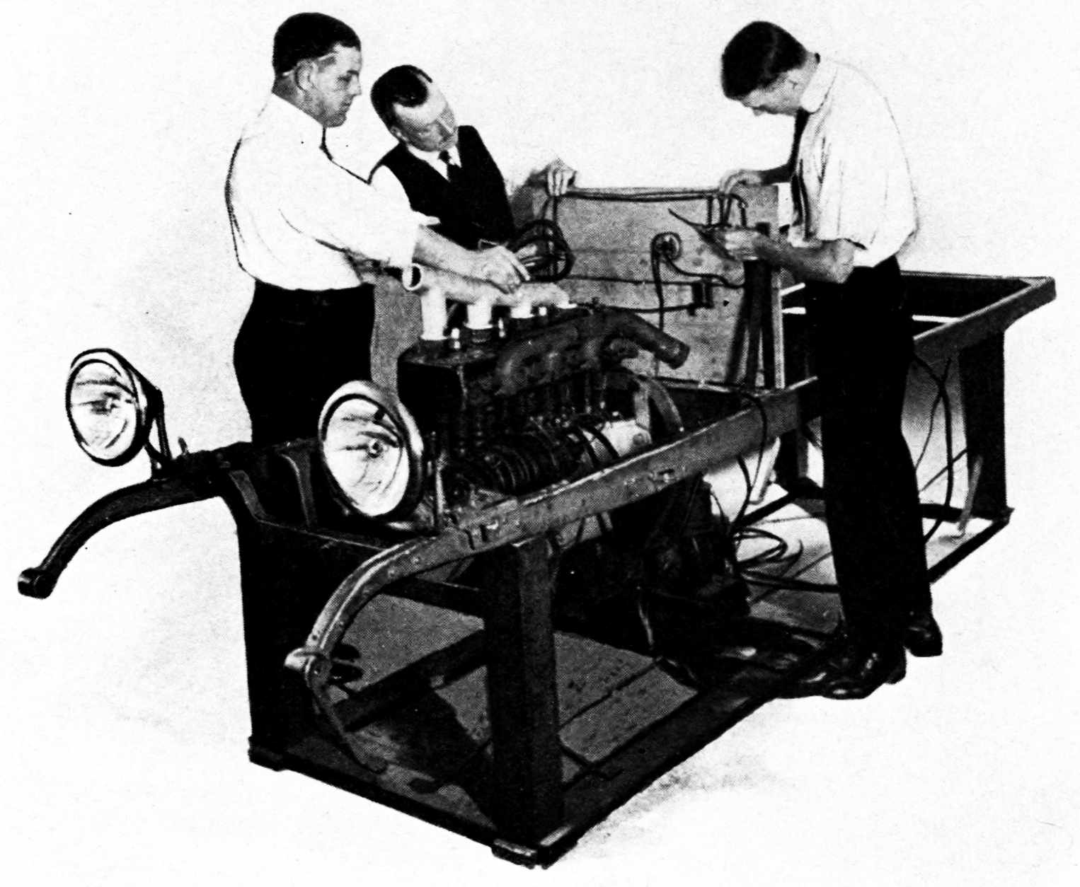 Every 1000 miles: Pack universal joints, ball and socket boots, hub caps; oil magneto, electric motor, electric generator; clean disc clutch; clean splash system; lubricate spring leaves by jacking up frame of car, spreading leaves apart, and putting graphite mixed with gasoline between leaves.