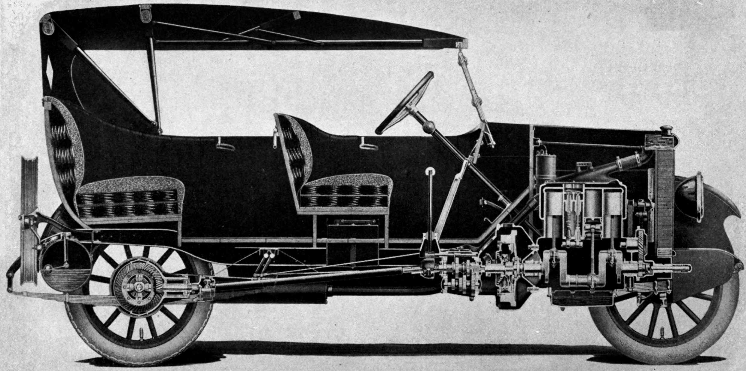 SECTIONAL VIEW OF A MODERN AUTOMOBILE WITH FOUR-CYLINDER ENGINE