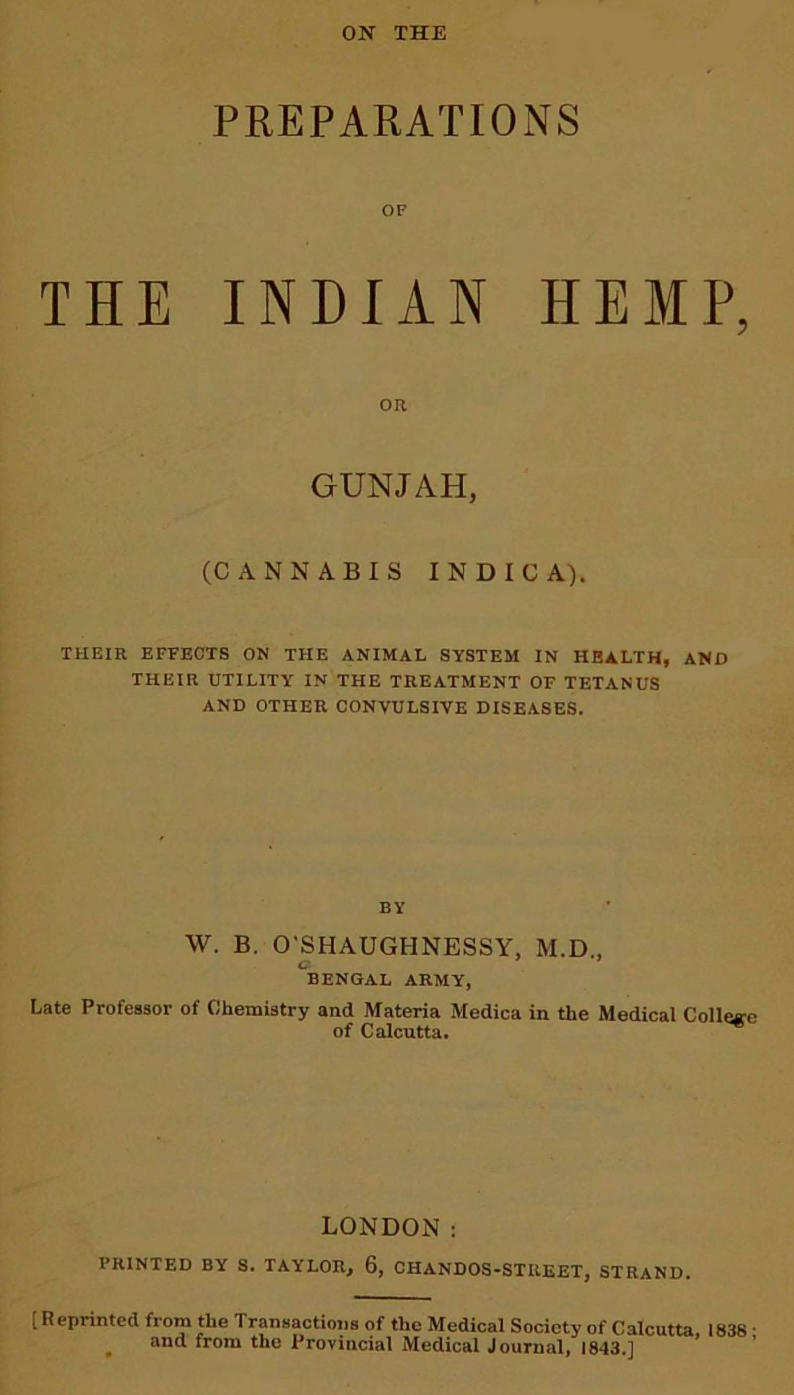 Title: On the Preparations of the Indian Hemp, or Gunjah (Cannabis Indica)