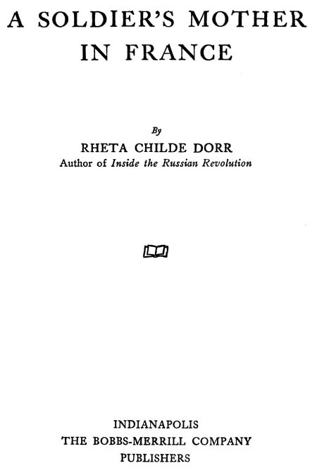 My star has come to mean love of country far surpassing the mild patriotism of other days. It means confidence and courage for whatever in these tragic times I shall need courage. It means pride in the young manhood of America and hope unbounded for the future of America, which lies in their hands. Before I went to France I wore my service pin for one soldier—my son. I wear it now for the American army. If I can, by writing of that army as I have[2] just seen it in France, lessen a little for other women the burden of anxiety and dread I shall count my journey worth while.