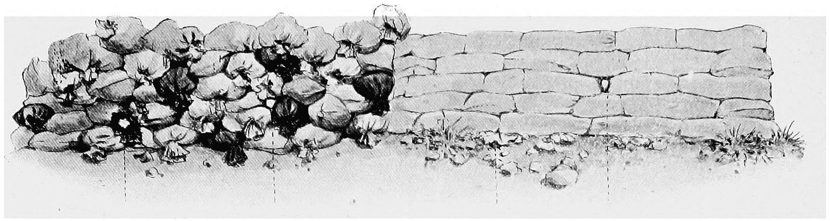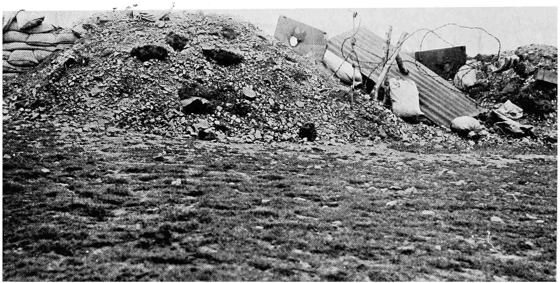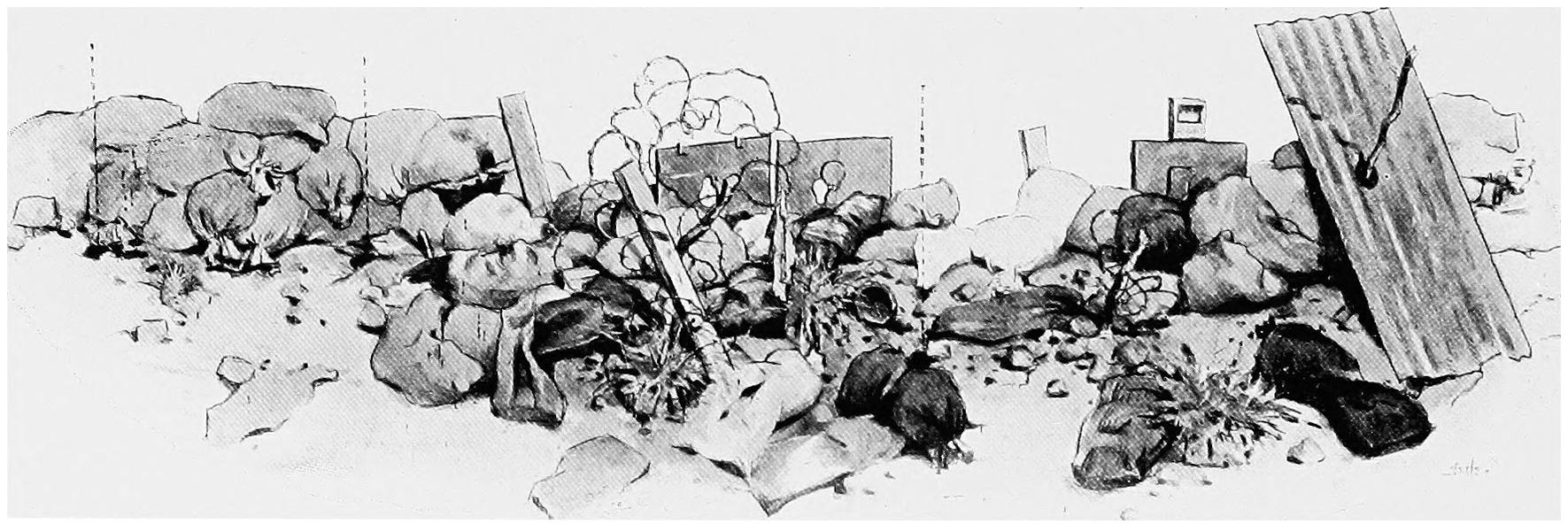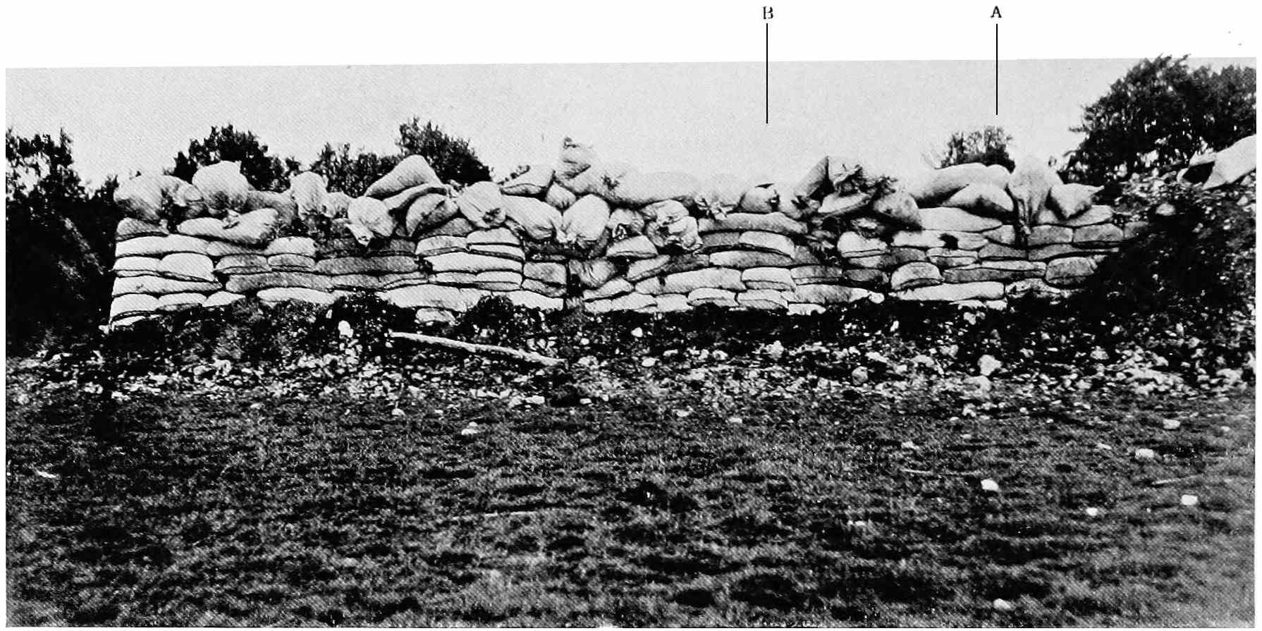 Section of typical German Parapet. Showing concealed loopholes made through tins, bags, etc. | 66 |