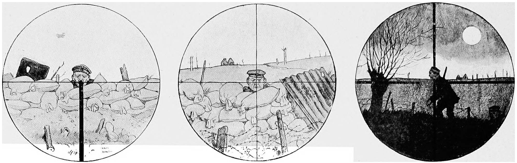The idea of organized sniping was not a new one to me when I went out to France in May, 1915. I had been there before, in the previous March, and had seen the immense advantages which had accrued2 to the Germans through their superiority in trench warfare sniping.