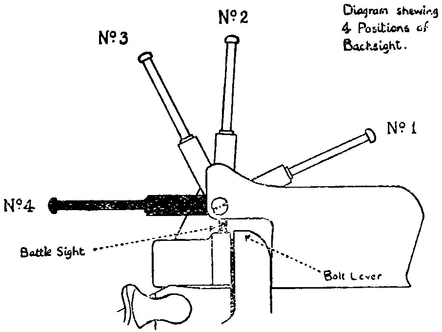Note:—The bolt lever must not be raised and drawn back when the sight is in No. 4 position, as if this is done the battle sight is sheared off.