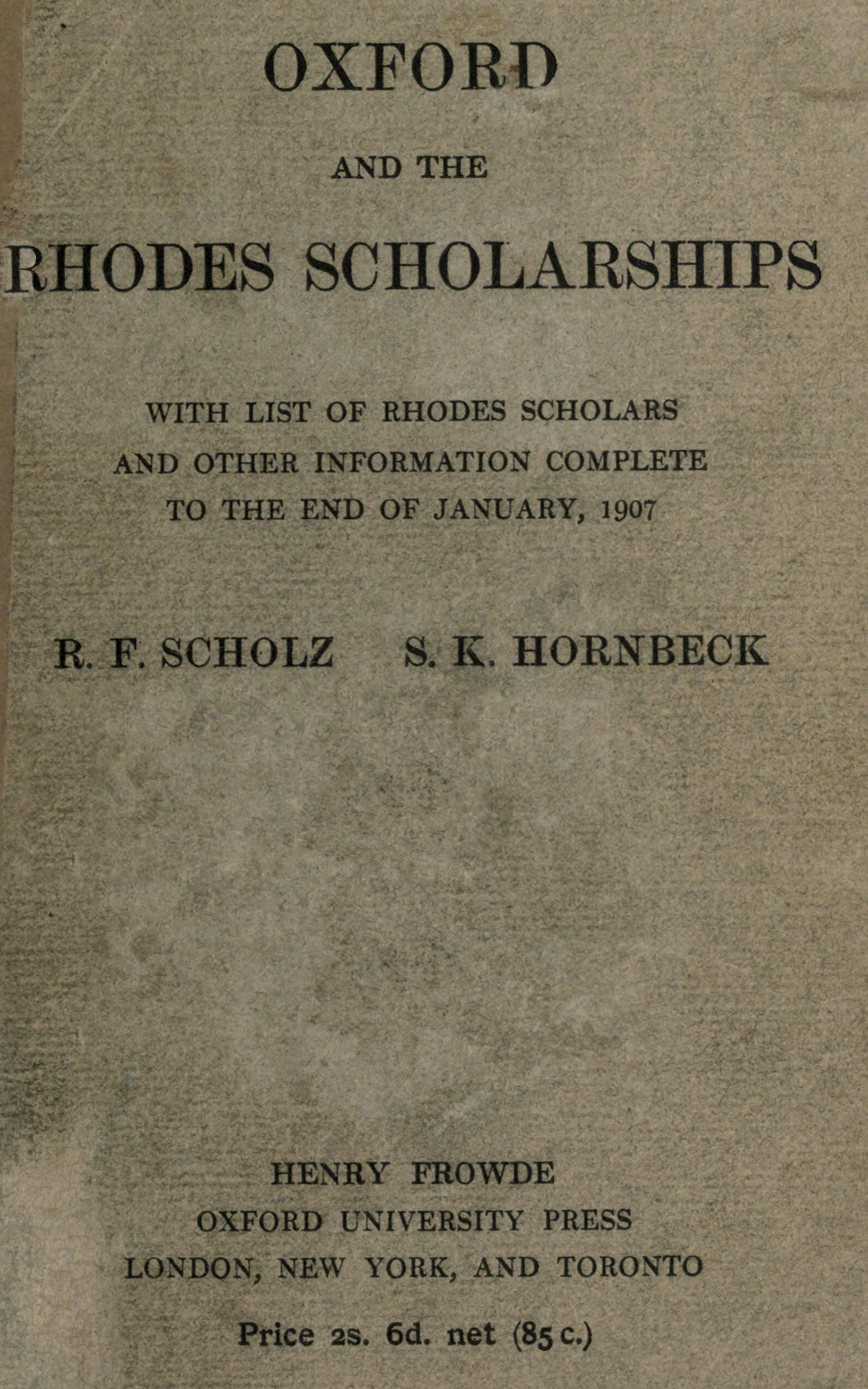 It must be clearly understood at the outset that this volume is in no way official, having been in no way authorized or approved by the Rhodes Trust or by Oxford University. For the fact of its appearance and for its form and contents the authors (or, perhaps better, the ‘editors’ of the material which it contains) must and do assume the sole responsibility. Yet for the facts which it contains we have had recourse to official or semi-official publications, and for accuracy we plead the authority of these sources.