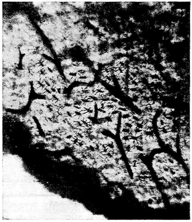 The injecting material may consist of one part finely sifted plaster of Paris, four parts water, and sufficient gentian violet to make a violet color. For the coloring, red aniline may be used in preparing this material. The dye should be dissolved in the water to be used in making the injection liquid. Caution must be used and the work rapidly done, as the plaster soon sets, or becomes solid, in the 346needle or in the tubing. A small cannula should be used, since the endothelial lining of the arteries are easily injured and difficulty may thus be created.