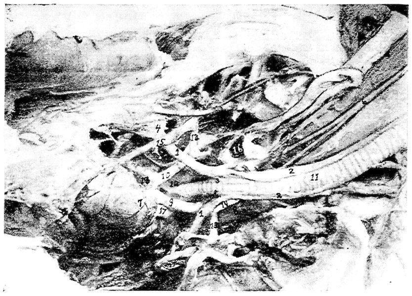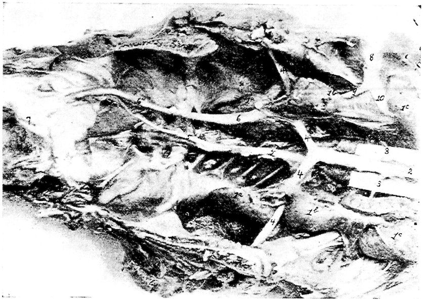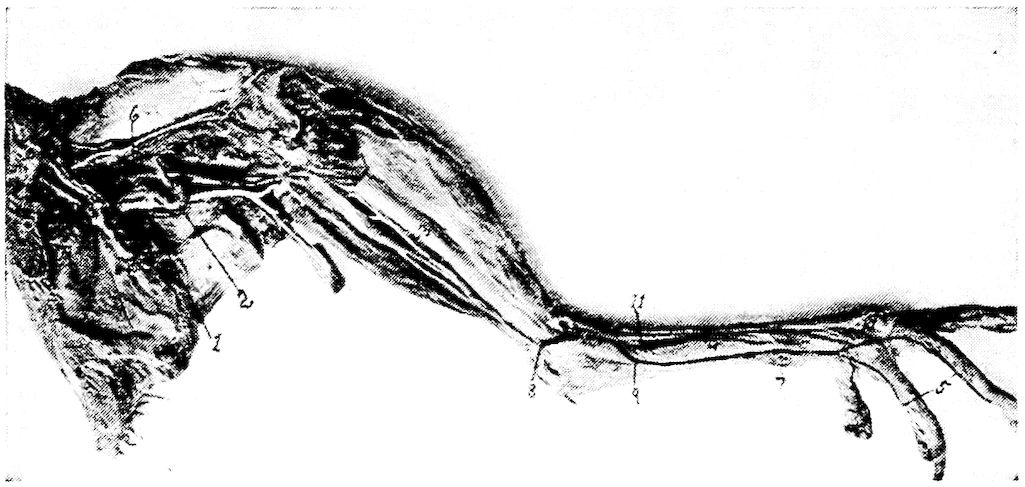 Directions for the Study of Arteries.—Arteries should be injected. Veins are usually more or less filled with blood so that the tracing of these is not so difficult as the tracing of uninjected arteries. Nerves are white and no difficulty is usually encountered in tracing them.