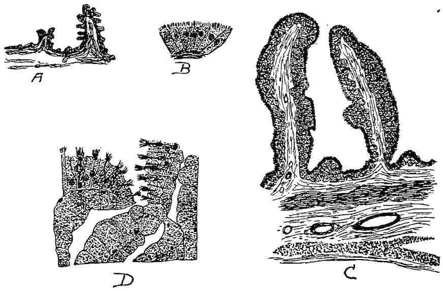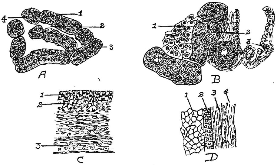 Directions for the Study of Soft Structures.—Secure a specimen of the tissue to be studied—lung, muscle, intestine, liver, pancreas—from a normal fowl just killed. The specimen should be not more than ½ inch square. After first hardening three days in 10 per cent. formaldehyde. Pass through the following fluids: