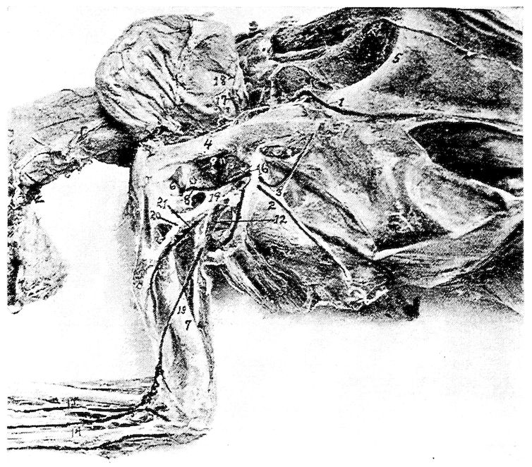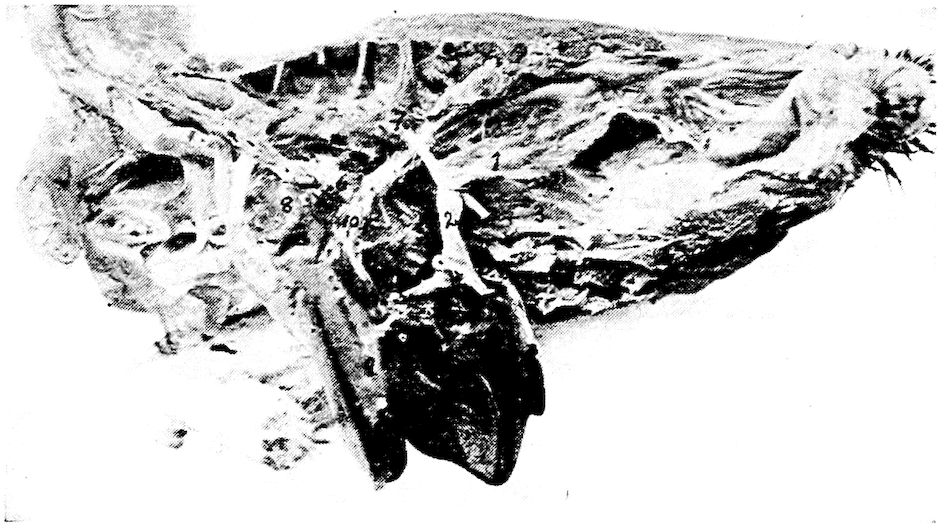 In commenting on this method Dr. A. F. Contant says: “I have found this to work very successfully in the injection of the lymphatics of the human skin, which, as you know, is a rather delicate injection and has been difficult of demonstration by other methods. With this method, however, I have prepared whole portions, as the side of the face, the leg, etc., of small animals and embryos which show clearly the whole course of the lymphatic vessels and nodes, in situ, and their relations to surrounding parts.”