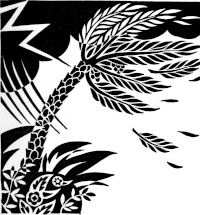 "Now I shall lay down my fear-soaked tunic half-way between these Twins." Then Ghond proceeded to take from under his tunic a bundle of old clothes which he had been wearing until today. He placed them on the ground, then climbed one of the trees. After Ghond had gone up, he swung down a rope ladder for me. I climbed up on it with Gay-Neck fluttering and beating his wings on my shoulders in order to keep his balance. Both of us safely reached the branch on which Ghond was sitting, and since the evening was coming on apace, we sat still for a while.
