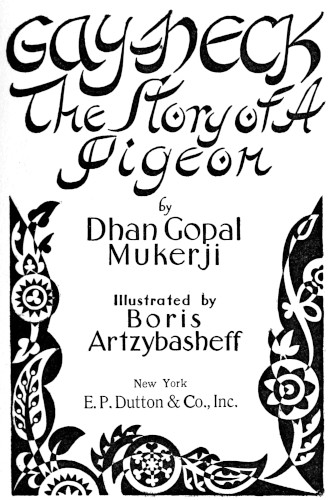 Of course Gay-Neck did not come out of his egg with an iridescent throat; he had to grow the feathers week by week; and until he was three months old, there was very little hope that he would acquire the brilliant collar, but at last when he did achieve it, he was the most beautiful pigeon in my town in India, and the boys of my town owned forty thousand pigeons.
