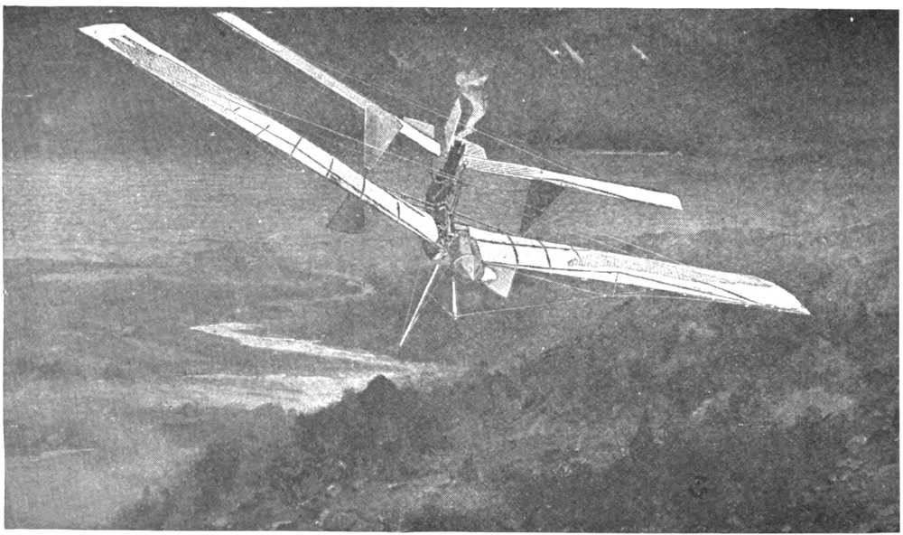 Langley’s Experiments in Aerial Navigation.—In all the history of aerial navigation one of the most romantic stories is that describing the scientific researches begun in 1887 by Langley and culminating in 1896 in the first really successful case of mechanical flight using a prime mover; continuing up to 1903 when this first successful machine, a model of 12-ft. span, was reproduced to full scale and manned for its trial flight by a human pilot; and ending with the destruction of this full-sized machine on launching, so that Langley missed the glory of being the actual discoverer of manflight only by a hair’s breadth, dying shortly afterward of a broken heart, as is conceded by those who knew him. If this full-scale machine had performed as successfully in 1903 as it actually did after being rebuilt and partly remodelled a decade later by the Curtiss company, Langley would have antedated the first successful flight made by the Wright brothers by a narrow margin of about 2 months.