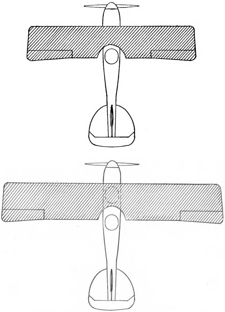 Learn to become an expert at vetting, which means the ability to judge the alignment of the airplane and its parts by eye. Whenever you have the opportunity practice sighting one strut against another to see that they are parallel. Standing in front of the machine, which in such a case should be on level ground, sight the center section plane against the tail plane and see that the latter is in line. Sight the leading edge against the main spars, the rear spars, and the trailing edges, taking into consideration the “washin” and “washout.” You will be able to see the shadow of the spars through the fabric. By practising this sort of thing you will, after a time, become quite expert, and will be able to diagnose by eye faults in efficiency, stability and control.