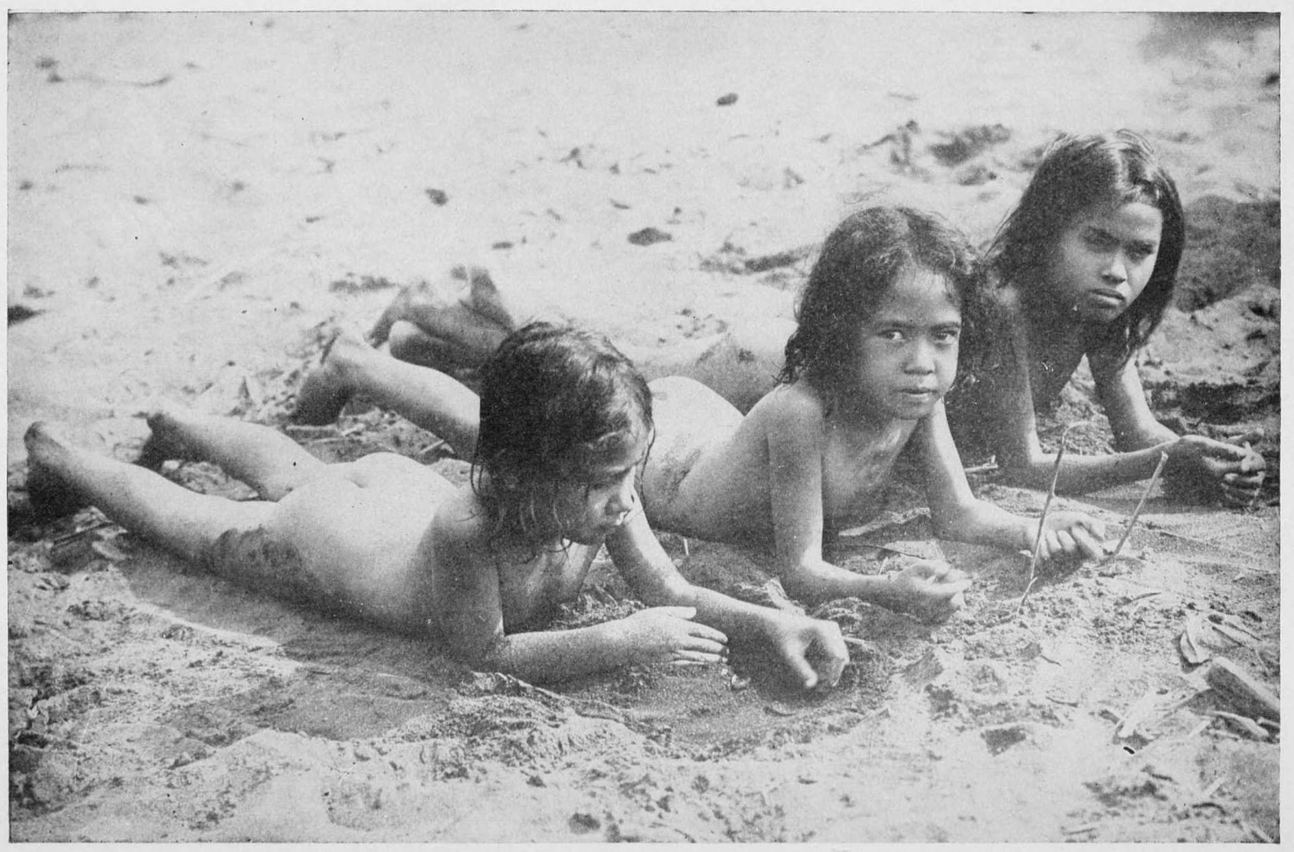 Unwatched so far as they knew, untrammeled, utterly at one with their native environment, they gave me unwittingly a look into the past of their race. Often I feel again beneath my head the cast-up spar, sun-whitened, of a forgotten wreck, and see from beneath drowsy lashes that vision of the golden age of Polynesia, and hear the desultory chatter and young, care-free laughter of those children of the sun who little knew the priceless worth of their gift to one white visitor on their shore.