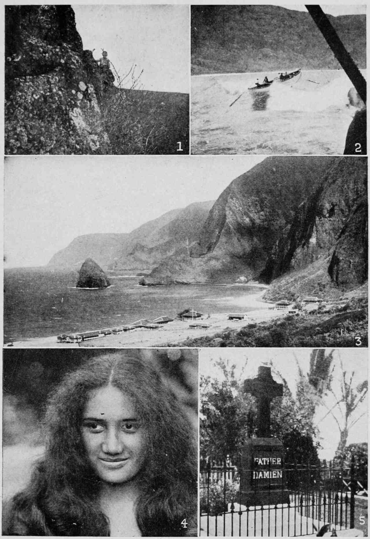 | (1) Landing at Kalaupapa, 1907. (2) The Forbidden Pali Trail, 1907. (3) Coast of Molokai—Federal Leprosarium on Shore. (4) American-Hawaiian. (5) Father Damien’s Grave, 1907. | 162 |