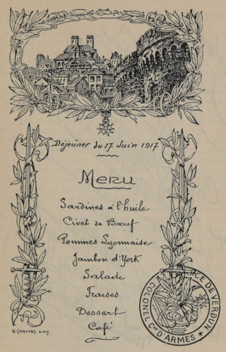 Souvenir Menu of Luncheon at Verdun, June 17, 1917 | ” | 46 |