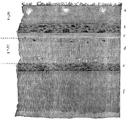 27. A tutti è noto come in certi casi sia difficile, a chi non dispone di un copioso corredo di materiali di confronto, la determinazione precisa di frammenti isolati di ossa. Quelli che si prestano ad una simile operazione tra i pezzi da noi raccolti nel monticello di Marend, spettano a ruminanti domestici. Di particolar interesse è un grosso frammento di mandibola co’ molari molto consumati, e che si distingue per la crescente larghezza della mandibola stessa, partendo dal margine alveolare, press’a poco come nei majali. In una mia breve memoria inserita nella Rivista contemporanea (Agosto 1863.), ho creduto poter riferire questo frammento ad una specie di cervo; ma poscia, uno de’ più esperti paleontologi dell’epoca nostra, il sig. Lartet, al quale io aveva communicato un modello di quel frammento, mi scrive che, a suo avviso, malgrado l’aspetto cerviforme da que’ molari preso per la consumazione, quel frammento deve riferirsi piuttosto ad un bue di piccola statura. Rimane sempre il carattere accennato della grossezza della mandibola, maggiore assai che nelle ordinarie razze domestiche del bue commune.