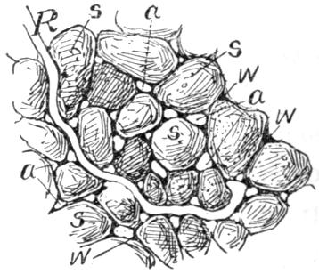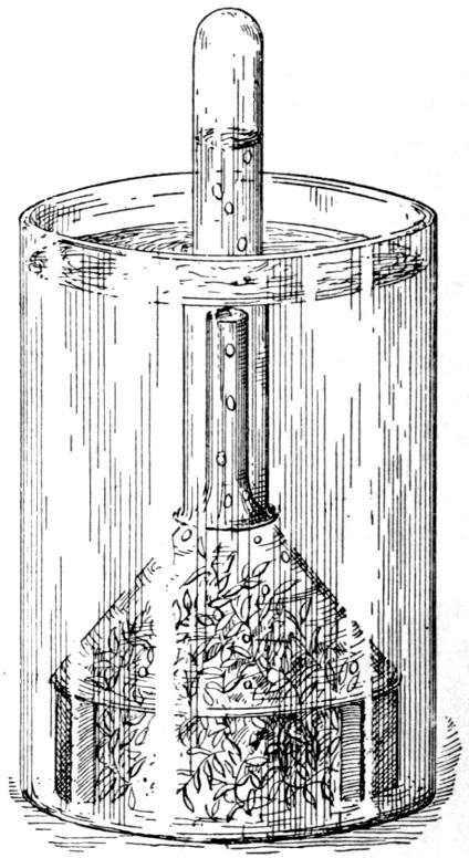 Water Supply.—Bacteria are more abundant in flowing streams than in water standing in lakes or reservoirs (contrary[H 163] to the usual belief). They are most abundant in rivers that flow through populous regions. They are comparatively scarce in dry, sandy soils, and very numerous in moist, loamy soils. The water of cities should never be taken from a stream or lake into which sewerage flows unless it is thoroughly filtered. Filters are constructed thus: first a layer of small stones, next a layer of coarse sand, lastly a layer of very fine sand on top, the total thickness being four or five feet. Beneficial microbes live upon the grains of sand and destroy all, or nearly all, of the dangerous microbes as the water slowly soaks through. The construction of such waterworks is left to sanitary engineers, of course, and the average citizen does not need to know the details.