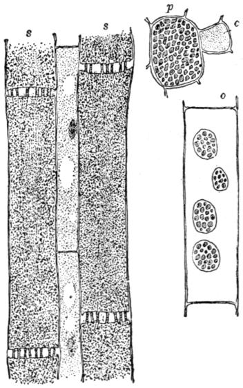 Usefulness of Bacteria.—Their chief work is to destroy dead tissue and return it to the soil and air for the use of green plants again, otherwise the earth would be filled with carcasses, etc. They are indispensable in soil formation. They give the agreeable flavors to butter and cheese, and cause milk to sour. A rod-shaped bacterium is called a bacillus (Fig. 130); a spherical one is a coccus.