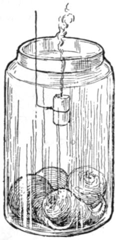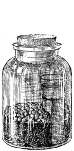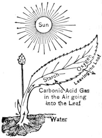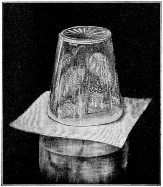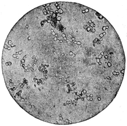 Experiment 2. Fermentation.—Put a tablespoonful of sugar into this water and set the glass in a warm place for a day or two. Do you see any bubbles of gas? Have the odor and taste changed? Does the microscope show that the yeast plants are now more abundant? By fermentation, or the growth of yeast in sugar, sugar is changed into carbon dioxid, a gas, and alcohol, a liquid.