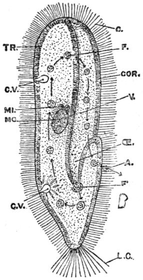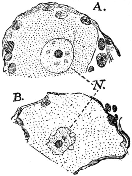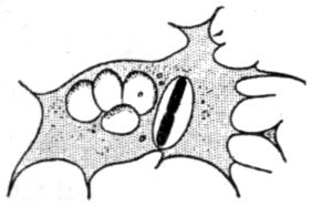 Fig. 133.—Protective White Corpuscle (phagocyte) digesting a microbe.