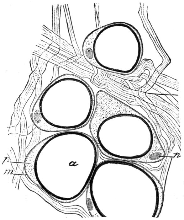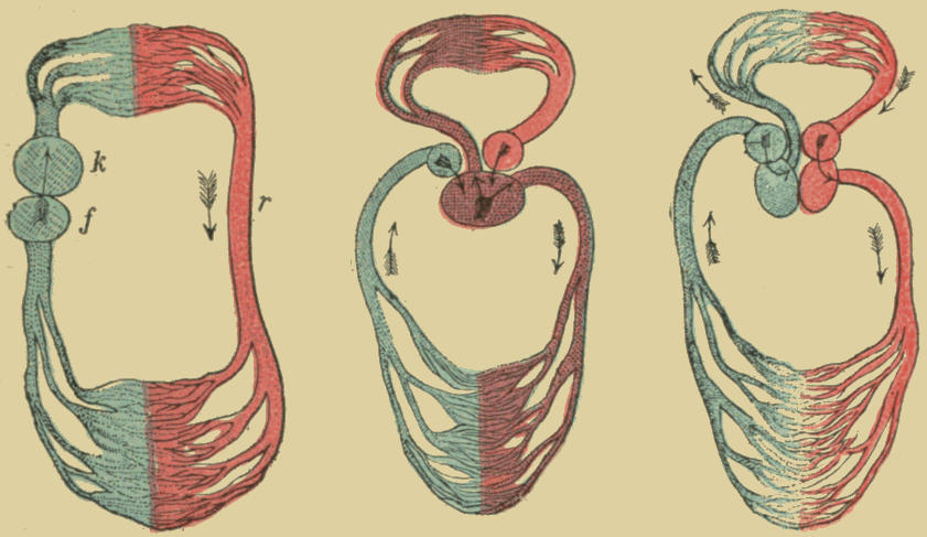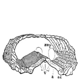Sense of Equilibrium.—Some fibers of the auditory nerve end in the loops and are not believed to be used in hearing. It is believed that each loop acts like a carpenter’s level, and the varying pressure of the fluid upon the nerves in the loops tells us the position of the body and constitutes the sense of equilibrium. There are how many of these loops in each ear? (Fig. 128.)