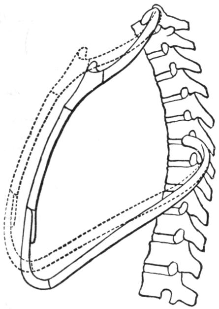 The middle ear, or drum chamber, contains air (Fig. 128). It is separated from the outer ear by the drum membrane. It contains three bones which stretch across it and conduct the sound waves from the drum membrane to the inner ear. State the order in which they are placed (see Fig. 128). The middle ear is connected with the pharynx by a tube (the Eustachian tube; pronounced yoo-stake´e-an, see Fig. 128). This tube is opened every time we swallow. It allows the air from the throat to enter the middle ear and keep the air pressure equal on each side of the drum skin. This tube and the middle ear are lined with mucous membrane.
