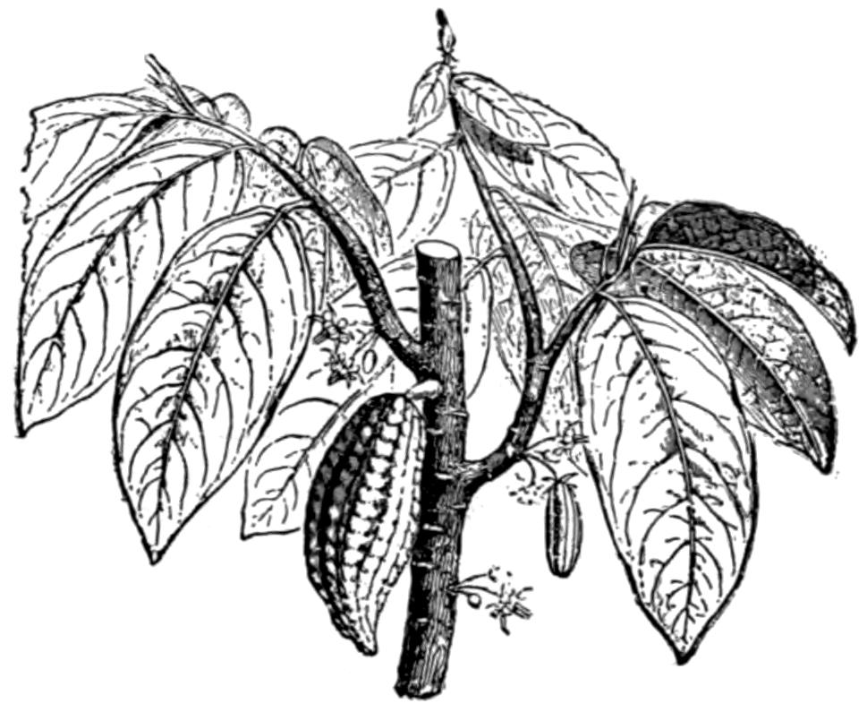 At the discovery of America, the natives of the narrower portion of the continent bordering on the Caribbean Sea, were found in possession of two luxuries which have been everywhere recognized as worthy of extensive cultivation; namely, tobacco and chocolate. The former of these has made its way into climates totally unlike that of its early home; the other of these plants, since it cannot bear the low temperature occasionally experienced in our subtropics, is more restricted in its range. The chocolate-plant is confined to the warmer regions of the globe, where it finds the congenial climatic conditions which it enjoyed and still enjoys in its earliest home in America.