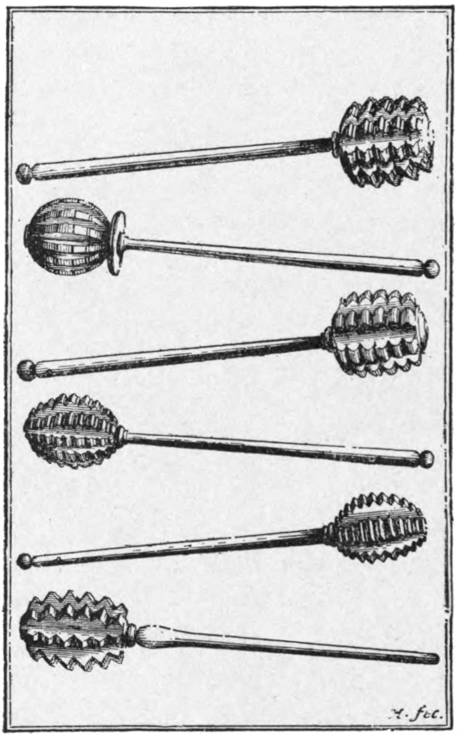 Some of the forms of Chocolate Stirrers (“Molinets”).