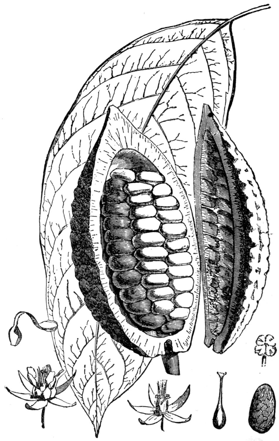 Flowers, Fruit, and Seeds of Theobroma.
