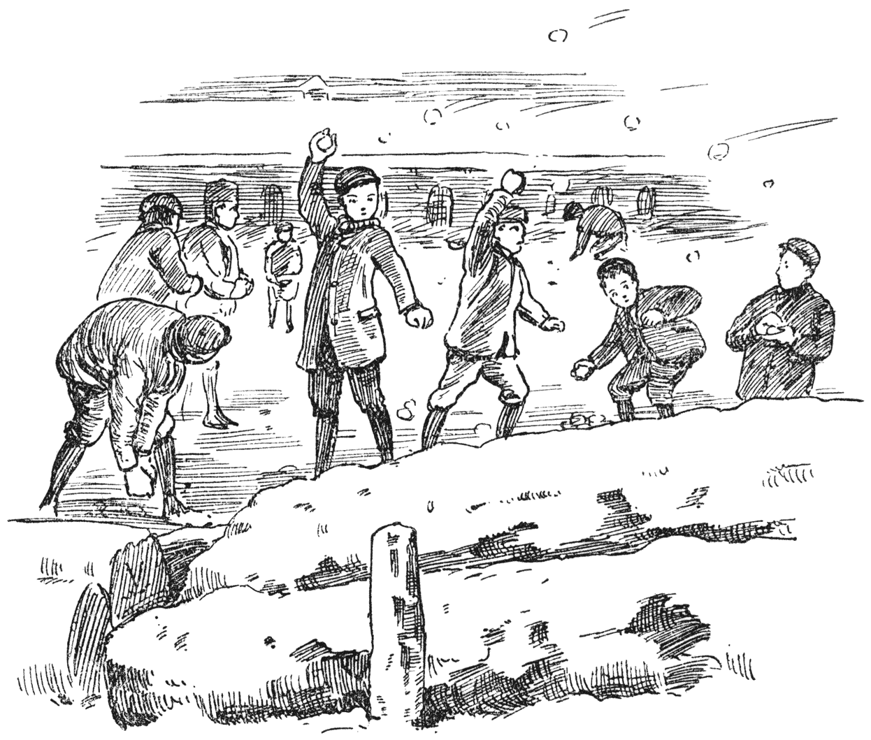 Op dat oogenblik kwam meneer Selhof naar buiten en wenkte, in de schooldeur staande, de jongens naar binnen; maar ze waren niet van hun plaatsen te krijgen.
