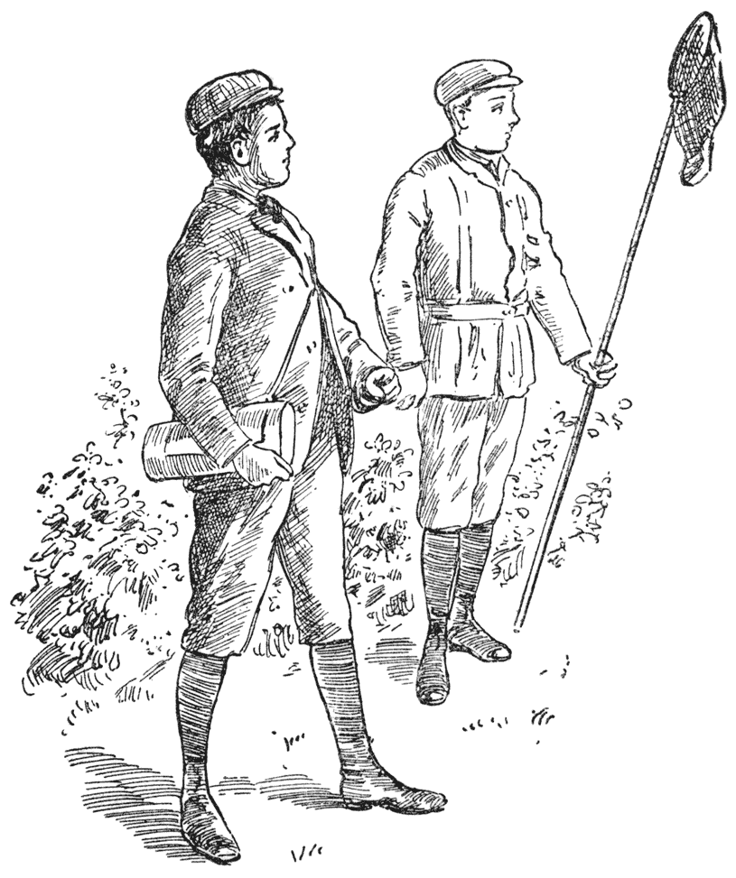 De knapen maakten derhalve op het pad naar de Blinde-Wei, waar zij gewoonlijk het balspel beoefenden, rechts-om-keert, staken het Stationsplein weer over en hadden de reizigers, waartusschen zij zulk een zonderlinge verschijning [3]hadden opgemerkt, al spoedig ingehaald, en bleven ze, hoewel vooreerst nog op eerbiedigen afstand, volgen.