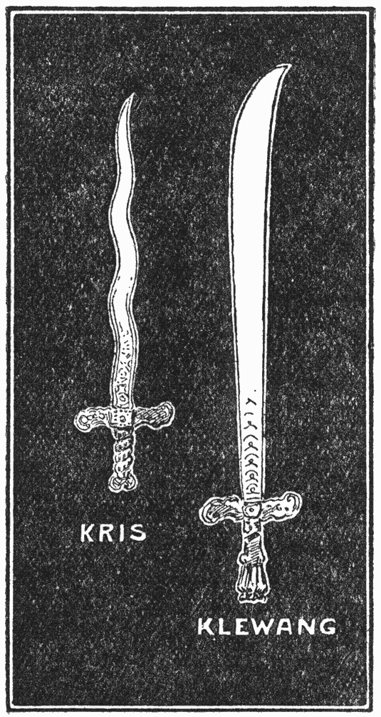 Klewang.—scherp zwaard, dat van voren breed uitloopt.