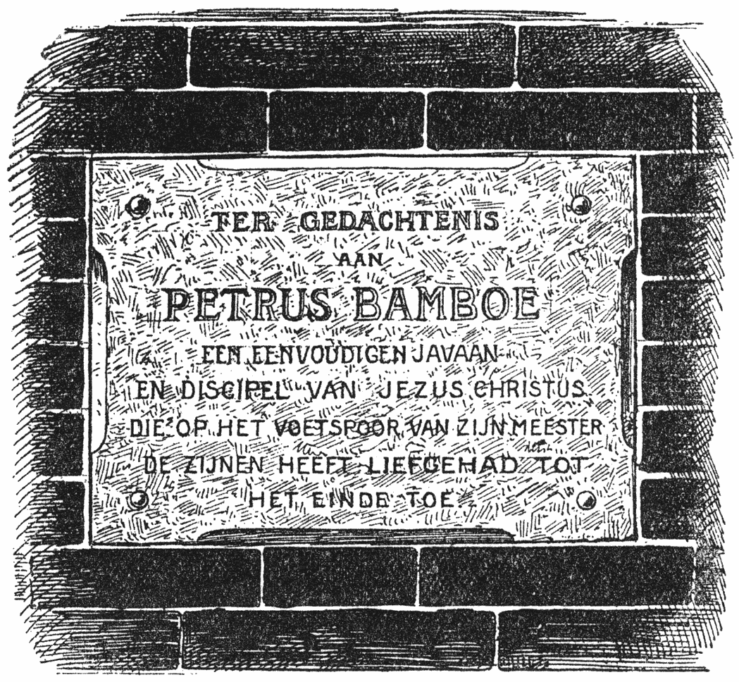 „Kinderen,” vervolgde hij, „dit is meneer Bamboe. Meneer komt van het eiland Java,—dáár!” wees hij, „in het westelijke gedeelte. Zijn kleeren en zijn kleur zijn wat anders dan die van ons, zooals je ziet, maar hij heeft met ons denzelfden Heiland lief, nietwaar meneer Bamboe?”