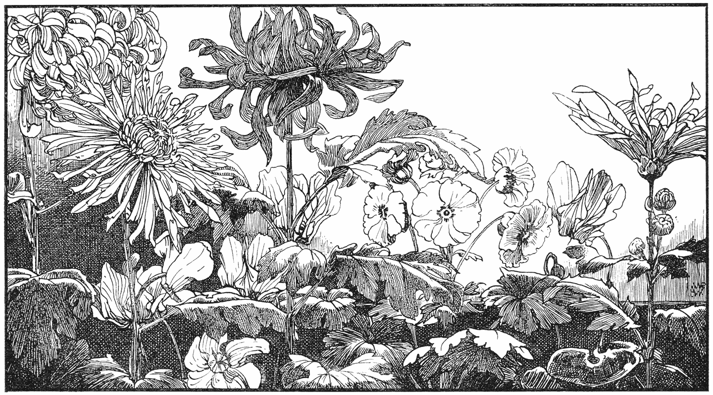 Tegenwoordig weet ieder schoolkind, dat de Chrysanthemums kweekvormen zijn van een plant, die zeer veel lijkt op onze gewone groote madelief of witte ganzebloem. [17]Sedert eeuwen hebben de Japanners zich op deze kweekerij toegelegd en zoo hebben ze allengs de prachtigste vormen en kleuren verkregen.