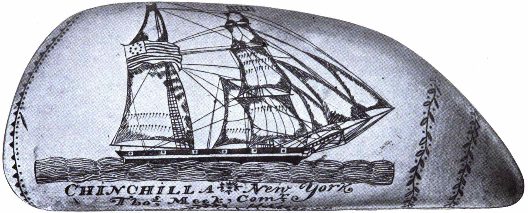 “Scrimshawed” on a whale’s tooth. Presented to the East India Marine Society of Salem in 1825, by Capt. William Osgood. Now in the Peabody Museum of Salem. |
