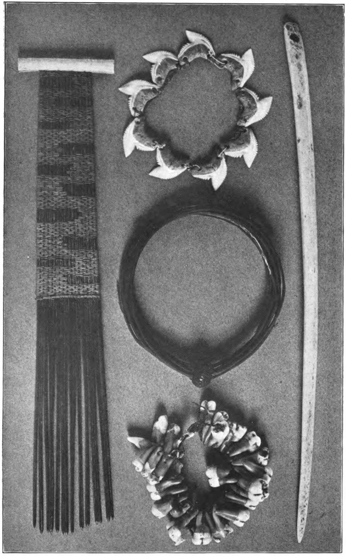 The ship Glide, of 306 tons burden, was built in Salem in 1811 for Joseph Peabody and Samuel Tucker and made thirteen voyages to the Mediterranean, Archangel, South America, India and the East Indies. In 1829 she was sent on a trading voyage to the South Seas under the command of Capt. Henry Archer. Most of her crew were young men and some were green hands. After doubling the Cape of Good Hope a course was set for New Zealand where fresh provisions, wood and water were taken aboard. At that time it was possible to obtain [8] for a small piece of tobacco or some trading article of trifling cost, finely carved and ornamented war-spears and canoe paddles and curiously figured shawls made from the native flax,—articles now highly valued by museums and collectors. While there the ship was visited by Pomare, the principal chief in that part of the island, who brought with him his favorite wife. He was a fine-looking man wearing a blanket fastened over his right shoulder and his face and thighs were tattooed in graceful scrolls. She was handsome for a New Zealander, wore a blanket fastened over her left shoulder and her lips and chin were tattooed.