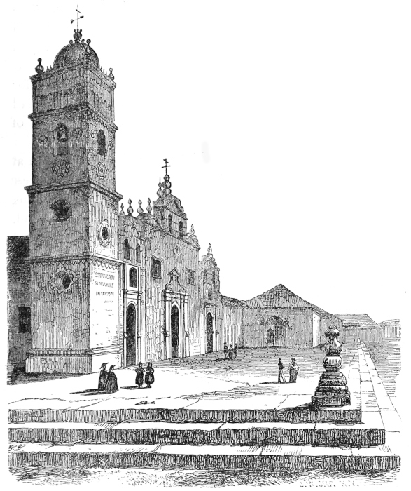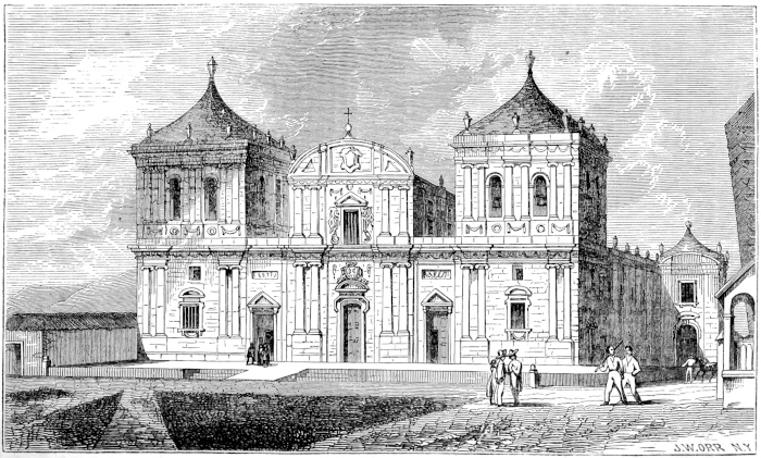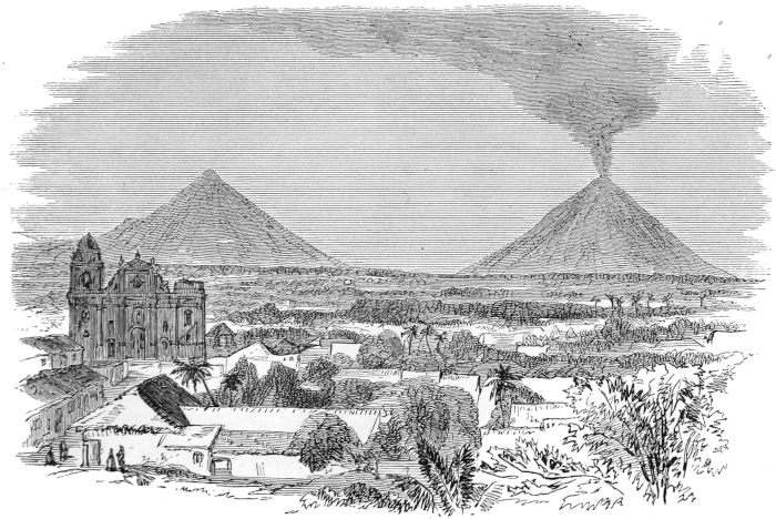 CHAPTER IX.—The City of Leon—Originally built on the Shores of the Lake Managua—Cause of its Removal—Its present Site—Dwellings of its Inhabitants—Style of Building—Devastation of the Civil Wars—Public Buildings—The Great Cathedral—Its Style of Architecture; Interior; Magnificent View from the Roof—The “Cuarto de los Obispos,” or Gallery of the Bishops—The University—The Bishop’s Palace—“Casa del Gobierno”—“Cuartel General”—The Churches of La Merced; Calvario; Recoleccion—Hospital of San Juan de Dios—Stone Bridge—Indian Municipality of Subtiaba—Population of Leon—Predominance of Indian Population—Destruction of Stocks—Mixed Races—Society of Leon—The Females; their Dress—Social Gatherings: the “Tertulia”—How to “break the Ice” and open a Ball—Native Dances—Personal cleanliness of the People—General Temperance—“Aguardiente” and “Italia”—Food—The Tortilla—Frijoles—Plantains—The Markets—Primitive Currency—Meals—Coffee, Chocolate, and “Tiste”—Dulces—Trade of Leon, | 237 |