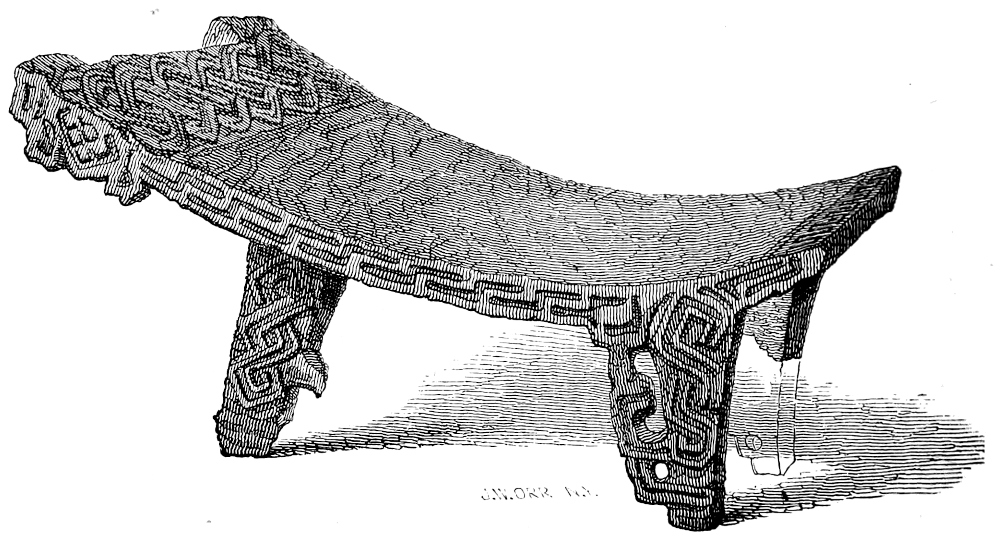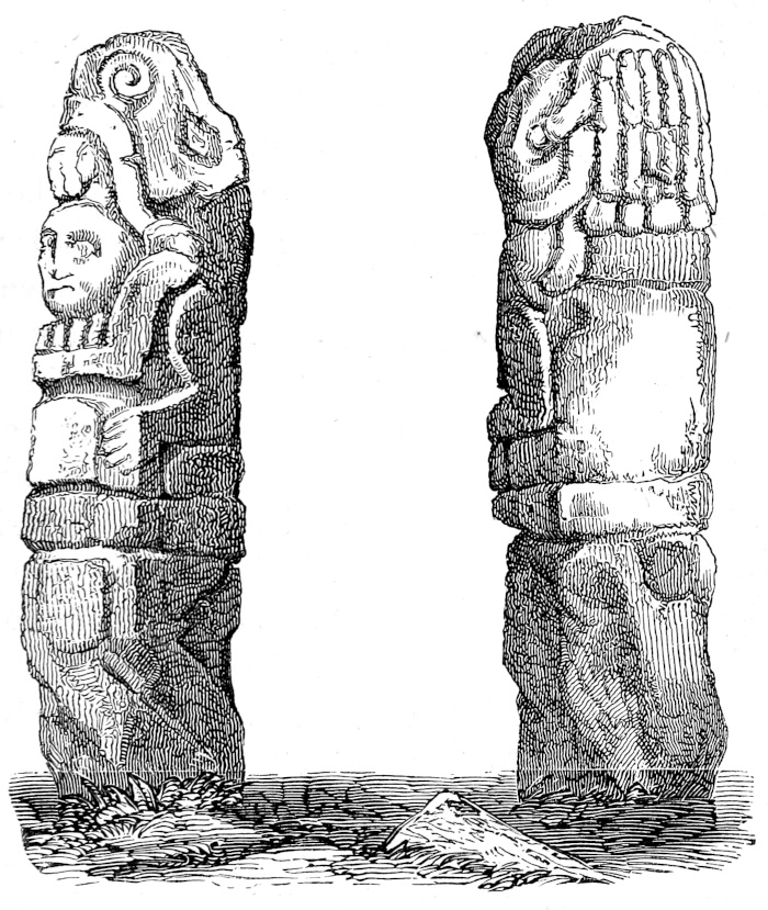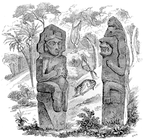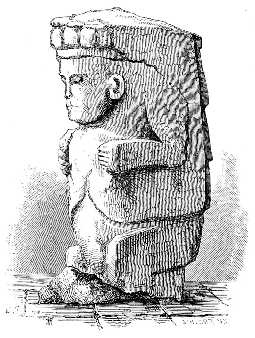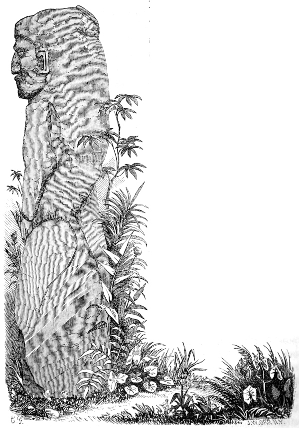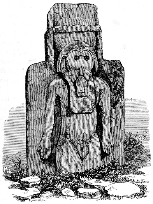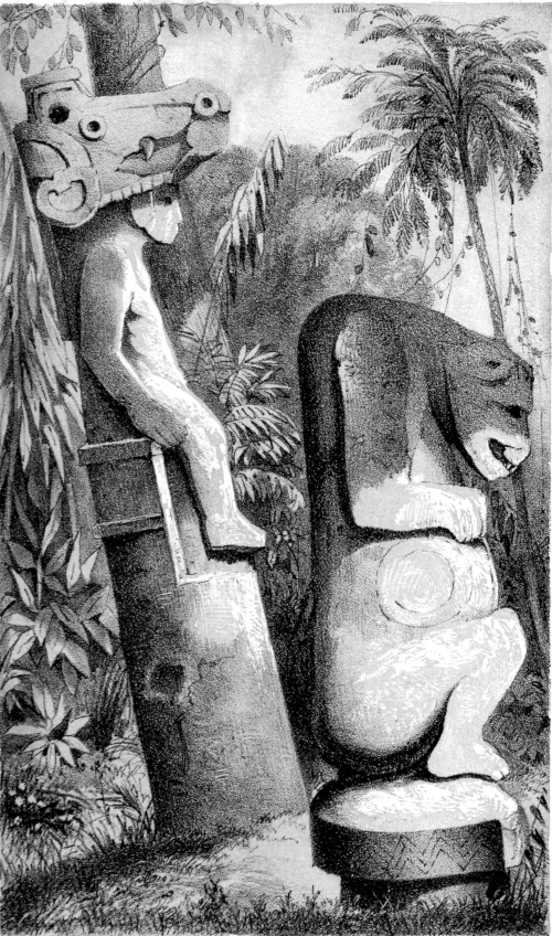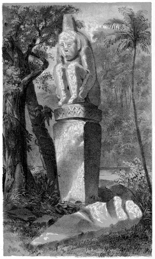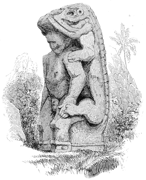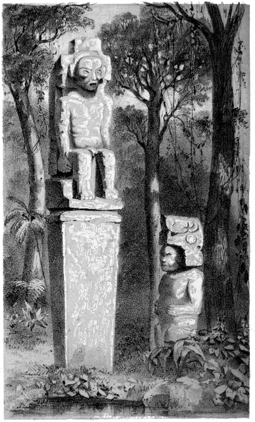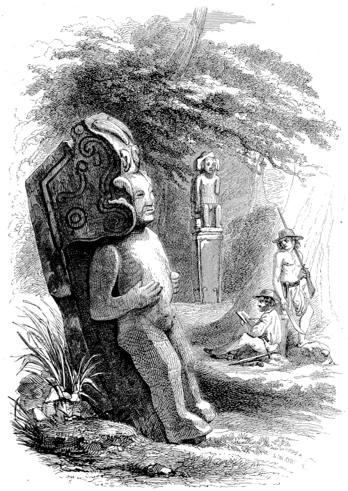 CHAPTER XI.—Antiquities—Ancient Statue in the Grand Plaza—Monuments on the Island of Momotombita in Lake Managua—Determine to visit them—The Padre Paul—Pueblo Nuevo and our Old Hostess—A Night Ride—“Hacienda de las Vacas”—A Night amongst the “Vaqueros”—The Lake—Our Bongo—Visit the Hot Springs of Momotombo—Attempt to reach one of the “Infernales” of the Volcano—Terrible Heat—Give up the Attempt—Oviedo’s Account of the Volcano—“Punta de los Pajaros”—Momotombita—Dread of Rattlesnakes—The Monuments—Resolve to remove the largest—A Nest of Scorpions—Tribulation of our Crew—Hard Work—How to ship an Idol—Virtues of Aguardiente—“Purchasing an Elephant”—More “Piedras Antiguas”—The Island once Inhabited—Supposed Causeway to the Main-land—A Perilous Night Voyage—Difficult Landing—Alacran, or Scorpion Dance—A Foot-march in the Forest—The “Hacienda de los Vacas” again—Scant Supper—Return to Leon—The Idol sent, via Cape Horn, to Washington—A Satisfied Padre—Idols from Subtiaba—Monstrous Heads—Visit to an Ancient Temple—Fragments—More Idols—Indian Superstitions—“El Toro”—Lightning on Two Legs—A Chase after Horses—Sweet Revenge—“Capilla de la Piedra”—Place of the Idol—The Fray Francisco de Bobadilla—How he Converted the Indians—Probable History of my Idols—The Ancient Church “La Mercedes de Subtiaba”—Its Ruins—“Agarrapatas”—Tropical Insects—Snakes and Scorpions versus Fleas and Wood-ticks—A Choice of Evils, | 285 |