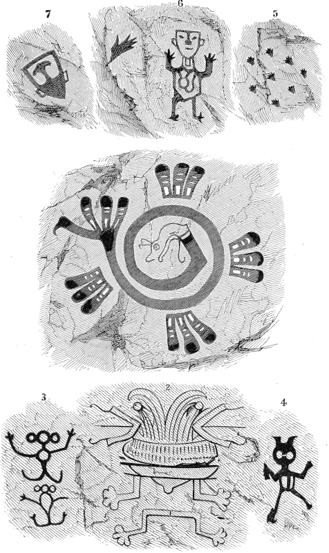 CHAPTER XV.—Visits to the capital City, Managua—Legislative Assembly; How to procure a Quorum—Executive Message—Ratification of Treaty with the United States—Antiquities—Lake of Nihapa—Huertas—Dividing Ridge—Traces of Volcanic Action—Hacienda de Ganado—An Extensive Prospect—Extinct Crater—Ancient Paintings on the Cliffs—Symbolical Feathered Serpent—A Natural Temple—Superstitions of the Indians—Salt Lake—Laguna de Las Lavadoras—A Courier—Three Months Later from Home—The Shore of Lake Managua—Aboriginal Fisheries—Ancient Carving—Population of Managua—Resources of surrounding Country—Coffee—Inhabitants—Visit Tipitapa—Sunrise on the Lake—Hot Springs—Outlet of Lake—Mud and Alligators—Dry Channel—Village of Tipitapa—Surly Host—Salto de Tipitapa—Hot Springs again—Stone Bridge—Face of the Country—Nicaragua or Brazil Wood—Estate of Pasquel—Practical Communism—Matapalo or Kill-tree—Landing and Estero of Pasquel or Panaloya—Return—Depth of Lake Managua—Communication between the two Lakes—Popular Errors, | 383 |