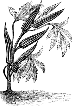 Gumbo, or Okra, is grown for its seed pods, which are used in soups and stews. Plant the seed eighteen inches apart, when the ground is warm, in spring, and use the pods while young and tender.