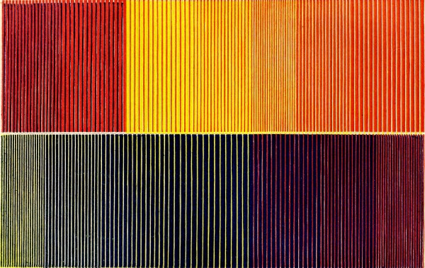 618. It is evident that the rules prescribed for judging of a colour, and the associations of two colours, in an absolute manner, must serve for judging as to the colours of an association, however complex it may be. We shall consider the masses of colours which are upon the same plane, the extent which each occupies, and the harmony which unites them. On submitting to a similar examination the colours on the other planes, we can then look at the colours of the latter. The critic who is well satisfied with seeing clearly at the same time, only a very [Pg 215] small number of the objects that a picture presents to him and who is also accustomed to examine a coloured composition in this manner, is in the position of a person who reads in succession writing on the same side of a sheet of paper; one series of lines crossing the first at right angles, and the third composed of lines running diagonally across the paper. The critic must review the ensemble of the picture as to its colours, and then, being attentive to their particular and general associations, he will be in a condition to enter into the thought of the painter, and to see whether he has employed the most suitable harmonies to express it. Although it is easier to form with opposed colours than with neighbouring colours binary assortments favourable to the associated colours, yet, when a great number of pure and brilliant colours are employed, it is more difficult to harmonize them than if we produced the effect with a small number of colours, which would involve only the harmony of analogy, or that of scale, or of hue.