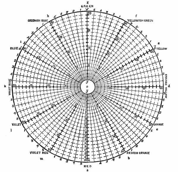 [3] It must be remembered that Chevreul speaks here of colours exclusively as to their optical effect, and that the very objection which he states to such an arrangement of colours, would be one of its best recommendations to the advocates of an obscure, in preference to a conspicuous uniform, as for Rifle Corps.