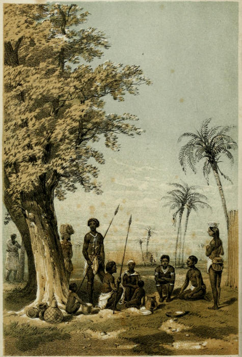The country of the Damaras—warlike, pastoral Blacks—was in the first instance explored; beyond them he found a broad tract, inhabited by aboriginal Hottentots; and, again, to the north of these, the Ovampo, a race of intelligent and kindly negroes, who [v]are careful agriculturists, and live in a land of great fertility.
