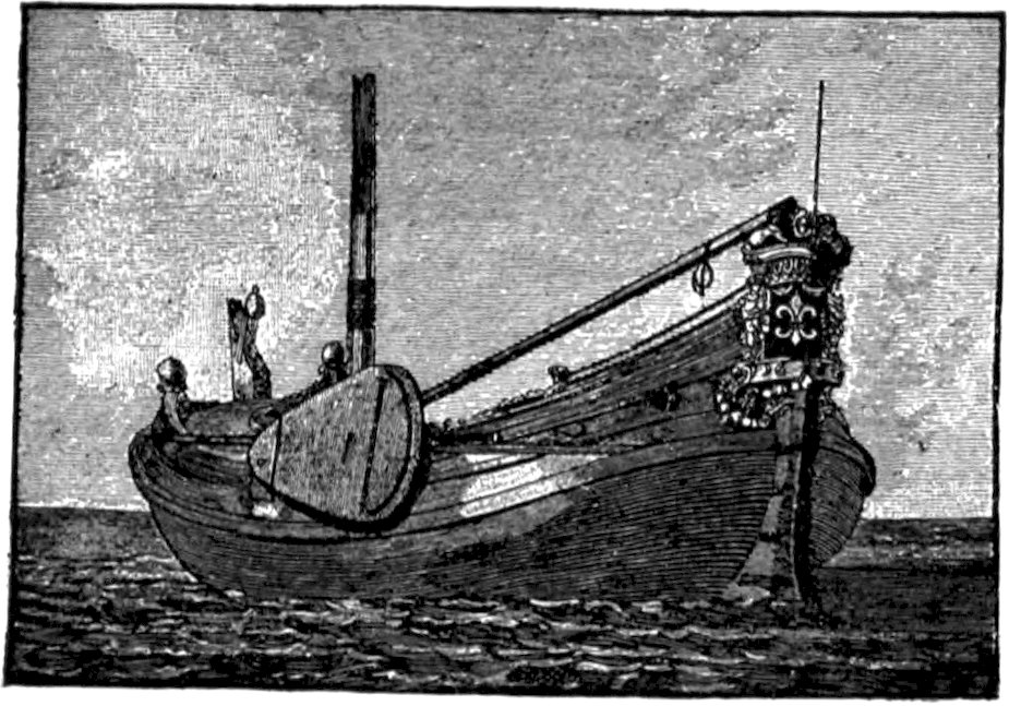 307For prudential reasons, in this uncertain climate a fellow should take his “oilers” along. Even as I write I am reminded of the advisability of this by certain unpleasant rheumatic twinges which rack my old weather-beaten hull, and which might perhaps have been avoided if I had kept myself drier in my youth. Let no “freshie” take an umbrella aboard, as it is a breeder of bad luck, and if there happens to be an old sea-dog in the craft, ten to one he will seize an early opportunity of surreptitiously heaving it overboard—a proceeding which every right-minded mariner will cordially approve.