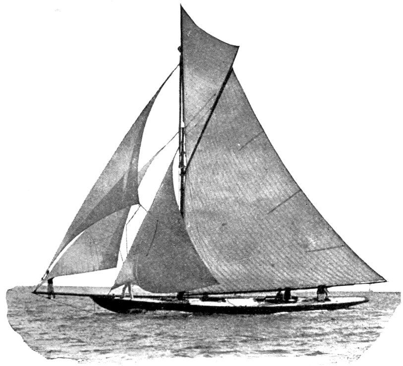 The owner of a small racing yacht taking part in the squadron cruise of the New York Yacht Club, which sometimes extends as far as Bar Harbor, Me., should take care that he carries 293along with him a sufficient “sea kit” for all the emergencies of the voyage. Certain social functions at Newport, for instance, will render evening clothes necessary, if not indispensable, to any yachtsman desiring to participate in the social gayeties of the Cowes of America. A “claw-hammer” coat is my pet abomination, and personally I would never “hoodoo” a racing yacht with any such luxurious superfluity. So strong is my antipathy to this garment of civilization that my will contains a special clause forbidding my undertaker to attire me for the grave in a so-called dress suit, as is sometimes the custom in this country.