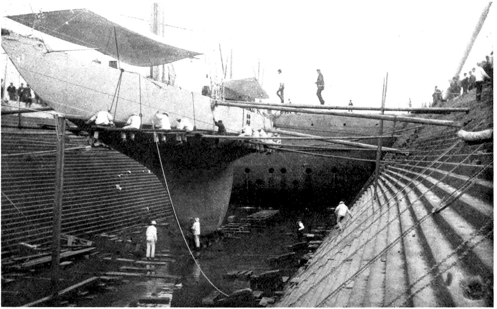 It will occur to you that the fancy attire to which I have alluded above will be inappropriate to any but the calmest and sunniest weather. Enough said! If you wish to gratify the heart of the yacht owner you will invest in a close crop and a clean shave preparatory 308to reporting aboard, and will carry nothing but a knife and a handkerchief in your pockets, leaving your jewelry and watch and keys and other personal bric-à-brac ashore. If you should chance to fall overboard during the race you will not feel sorry if you availed yourself of this valuable hint, for salt water plays the devil with the works of a timepiece, and but few watch-cases are actually fluid-proof. Besides, every ounce of superfluous weight militates against the speed of a craft, and “mony a mickle makes a muckle.”