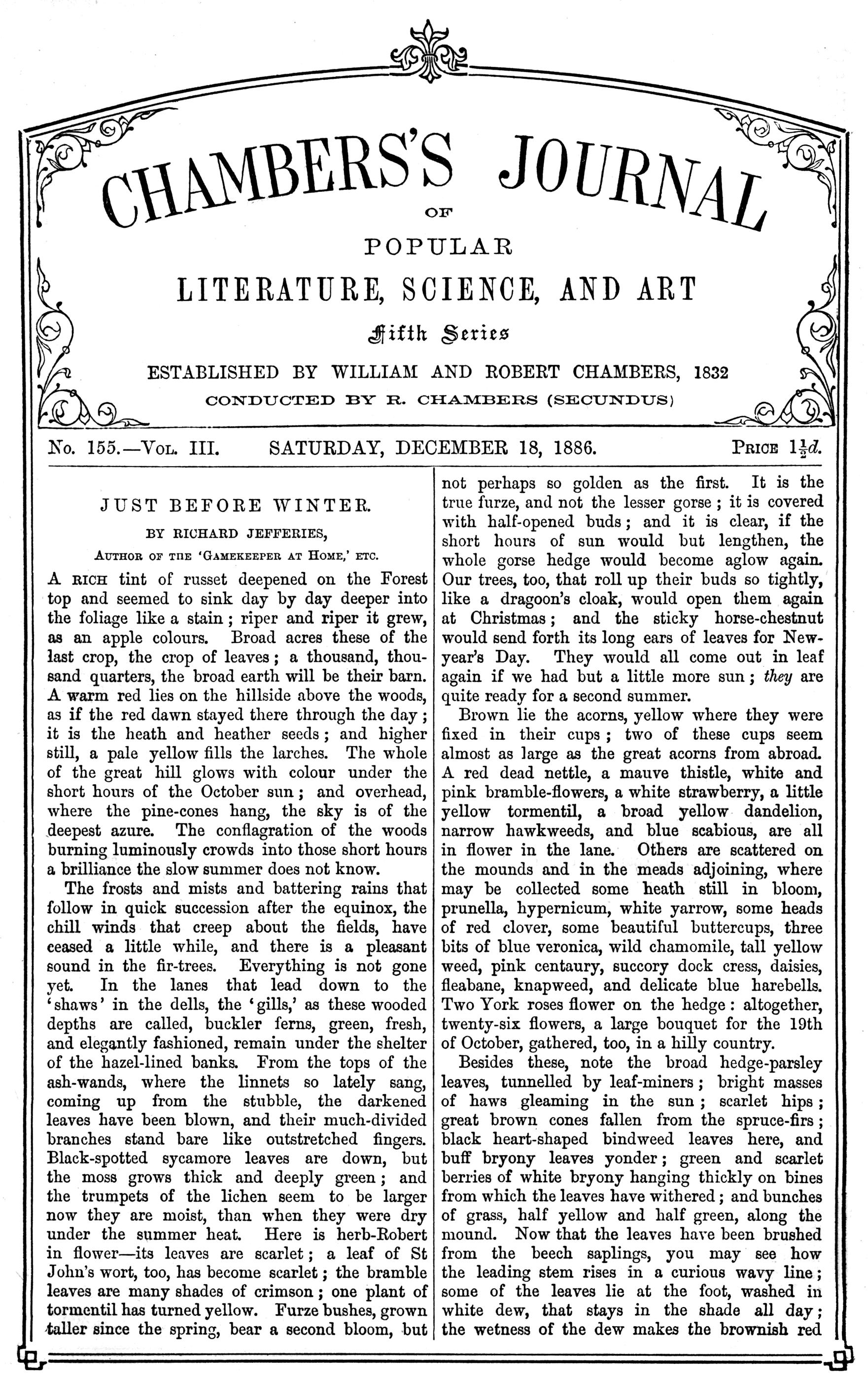 Title: Chambers's Journal of Popular Literature, Science, and Art, fifth series, no. 155, vol. III, December 18, 1886